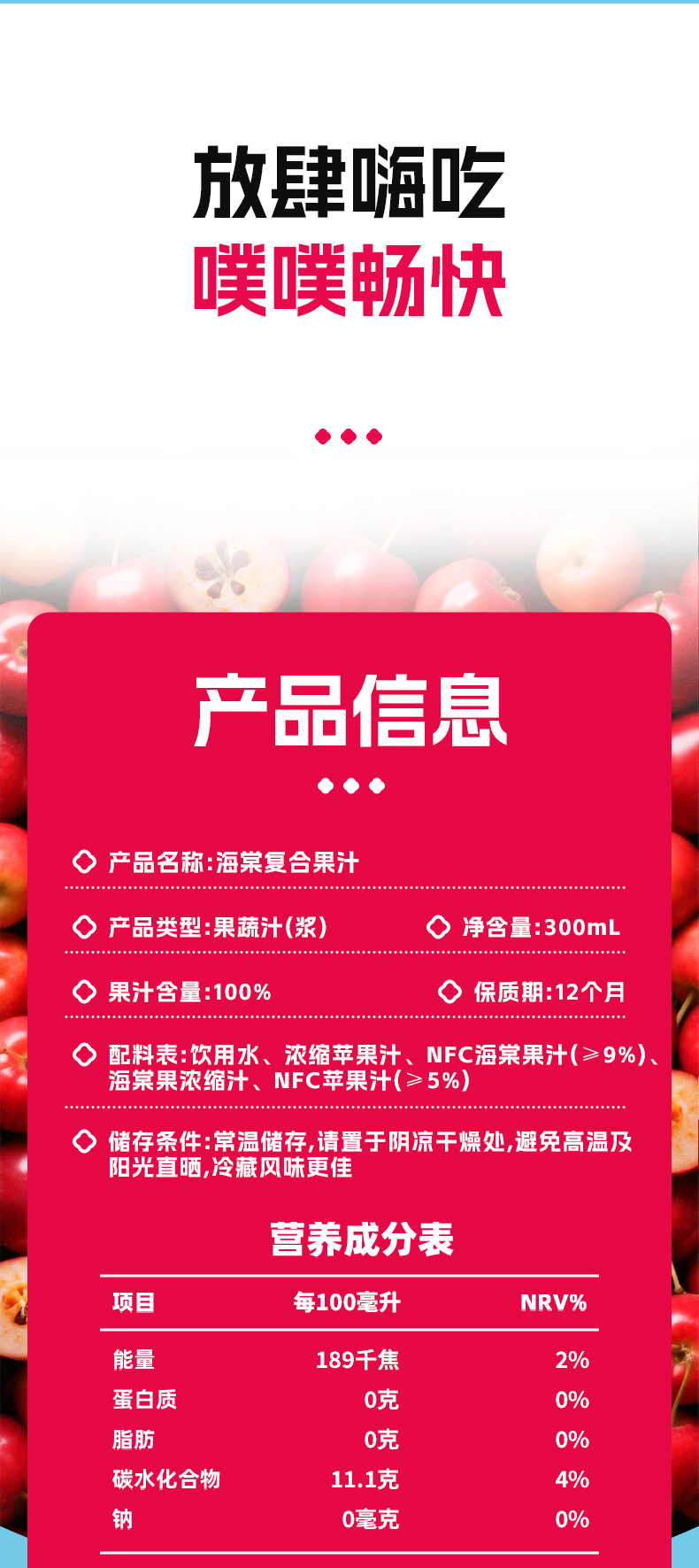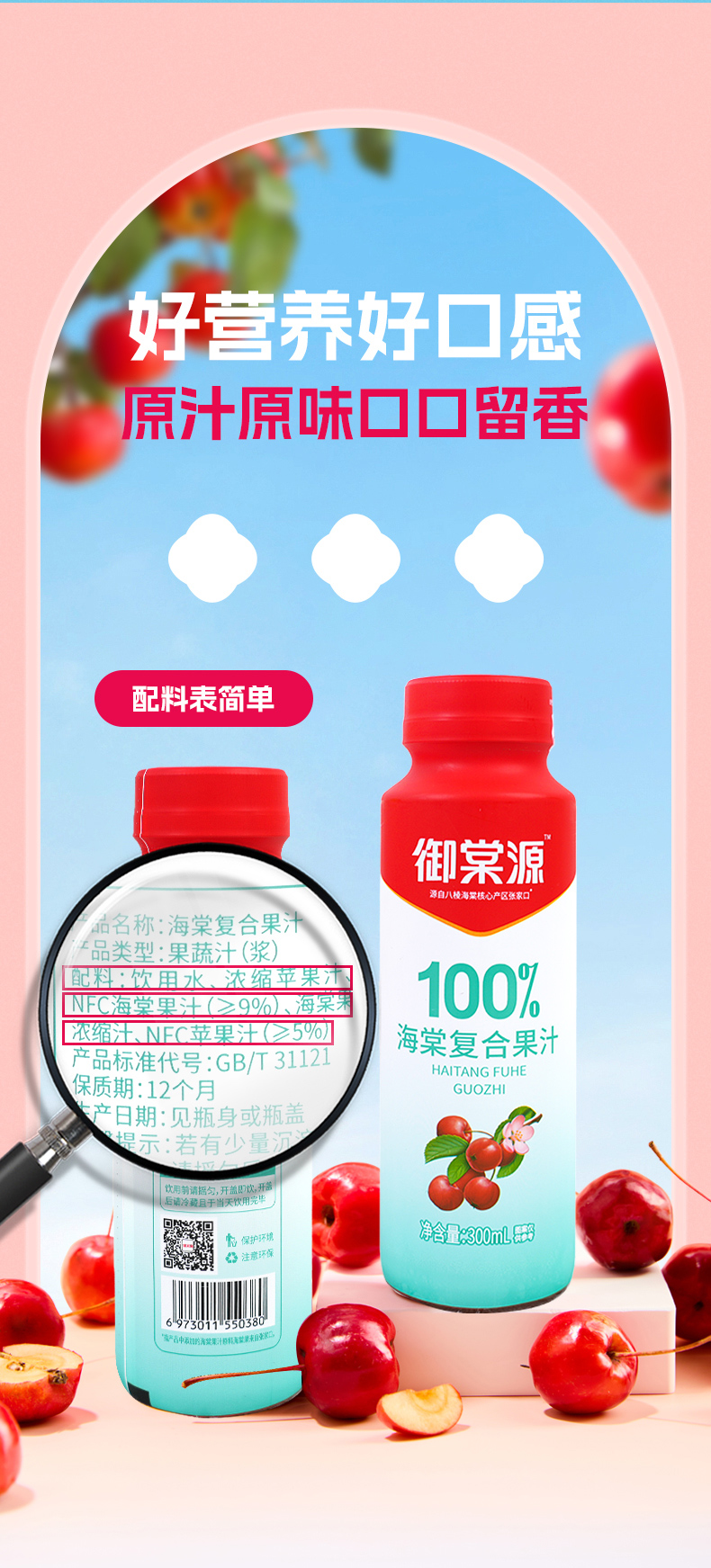 海棠复合果汁饮料300ml*15瓶/箱